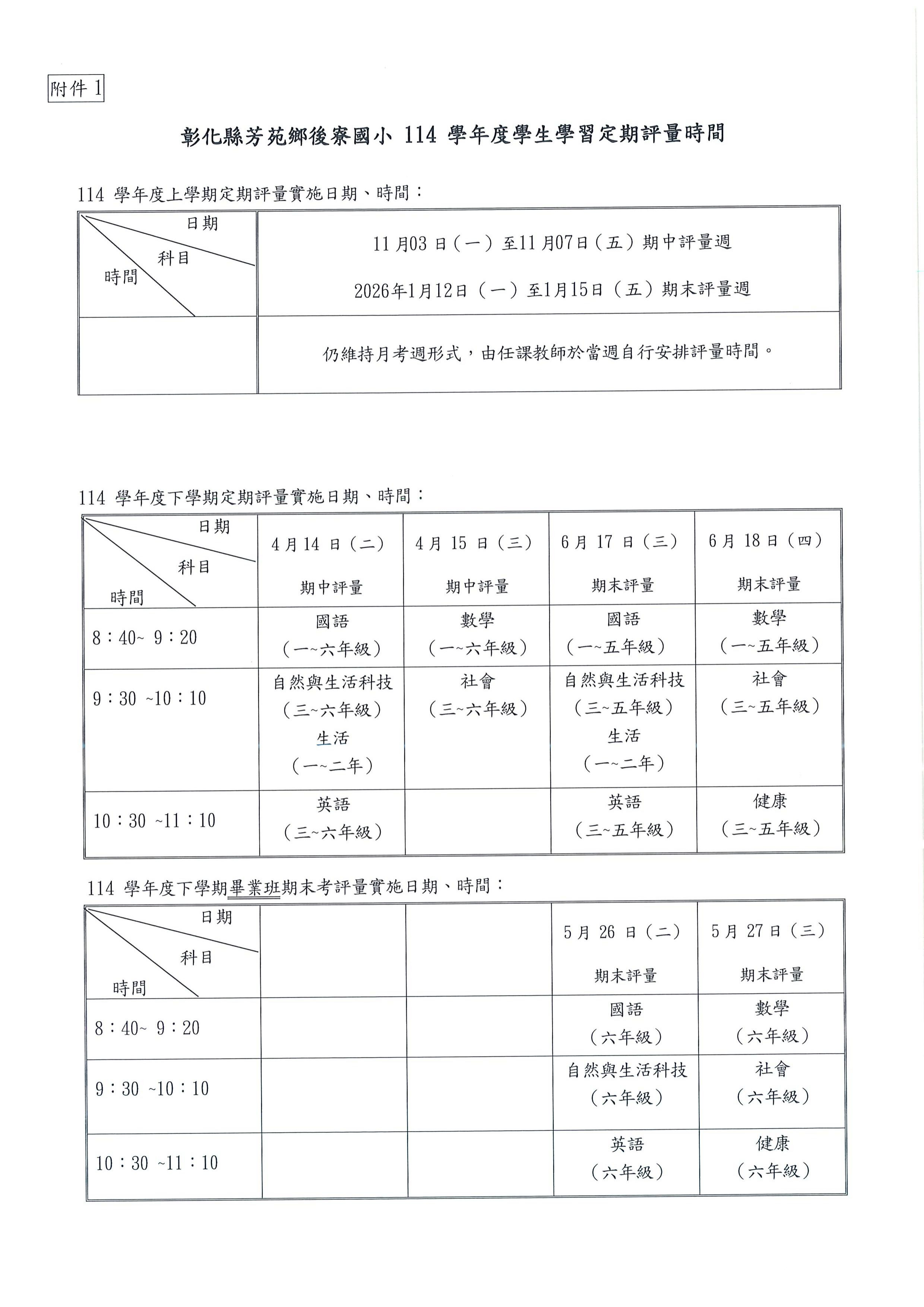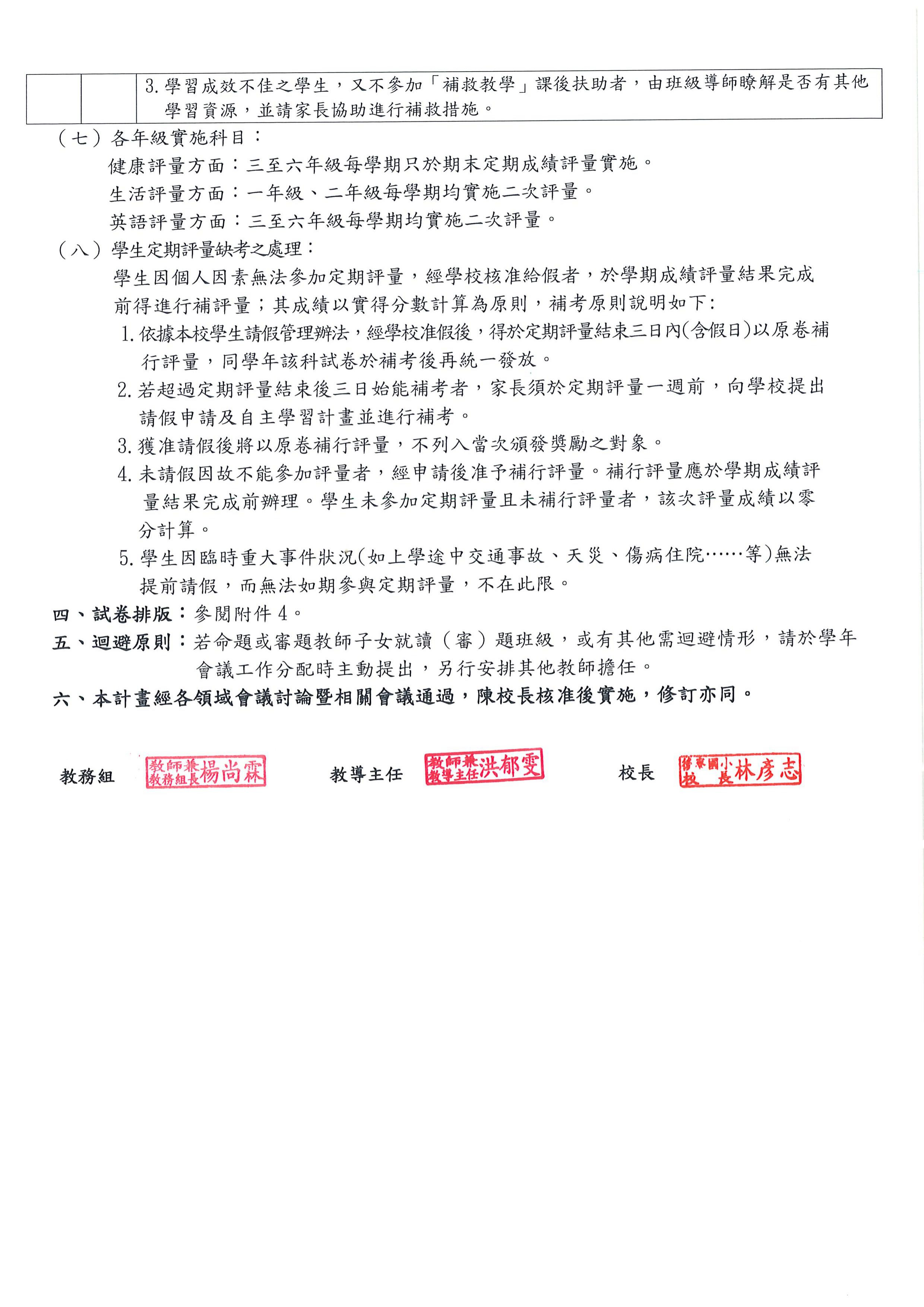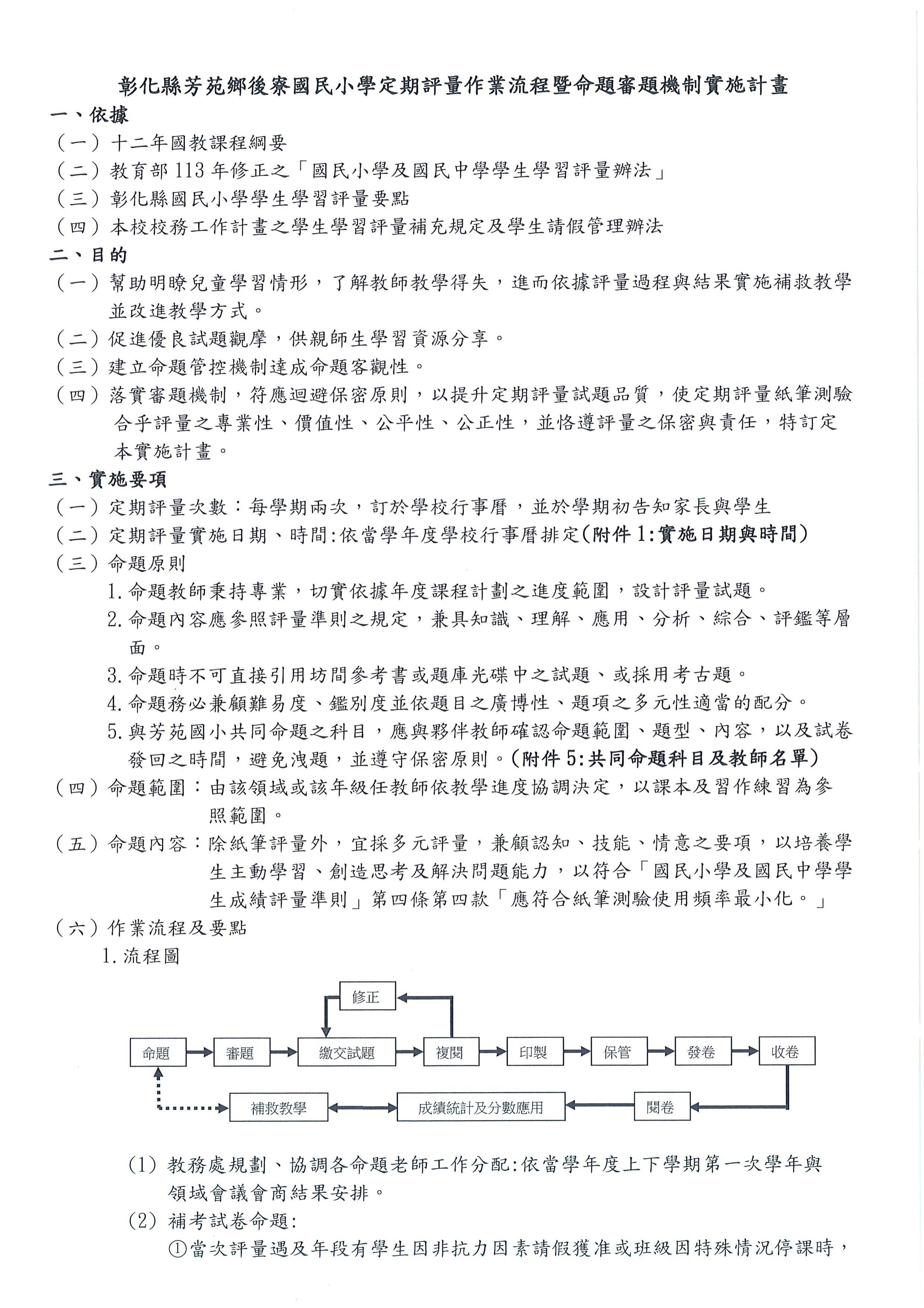 彰化縣後寮國民小學定期評量作業流程暨命題審題機制實施計畫