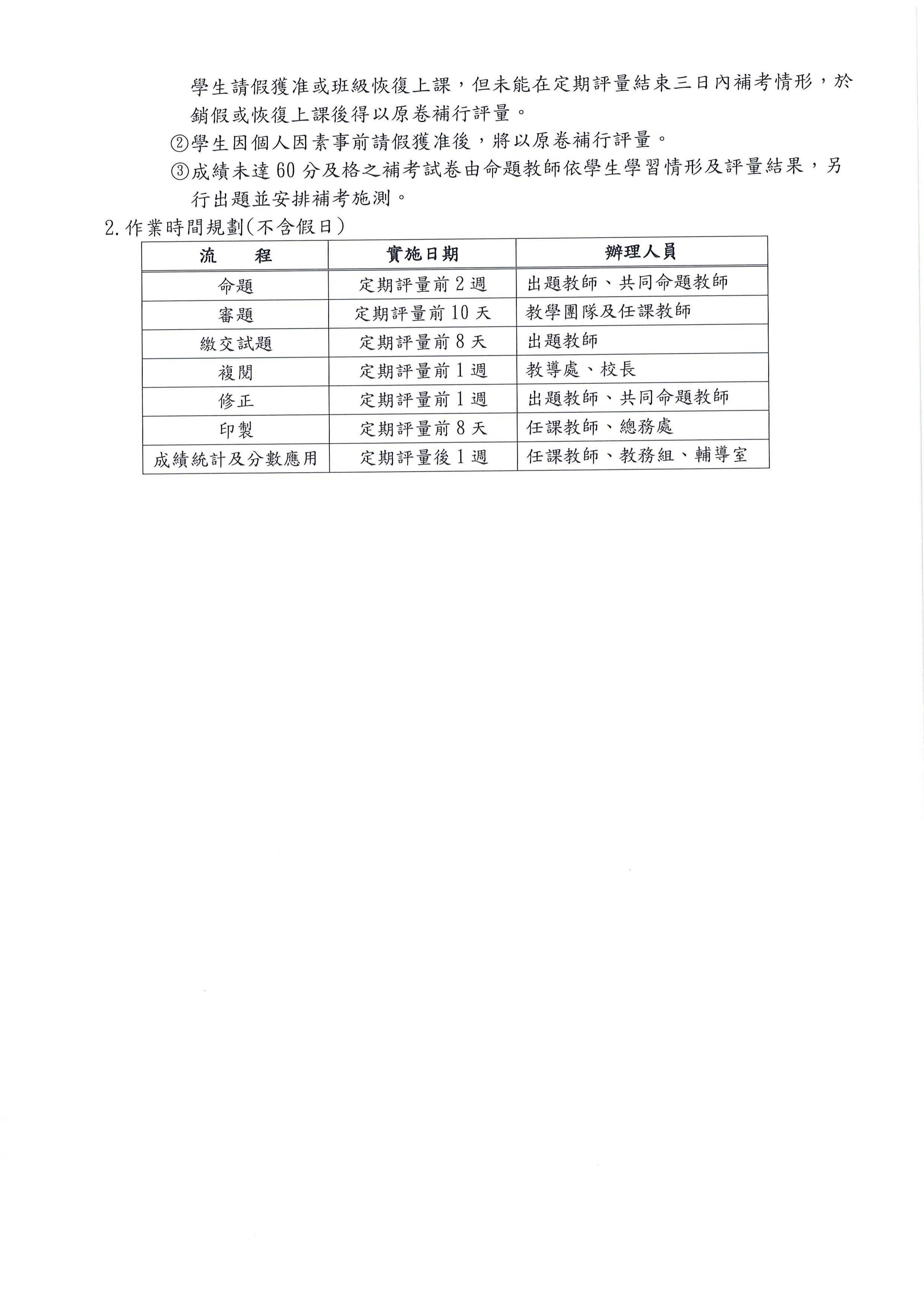 定期評量作業流程暨命題審題機制實施計畫