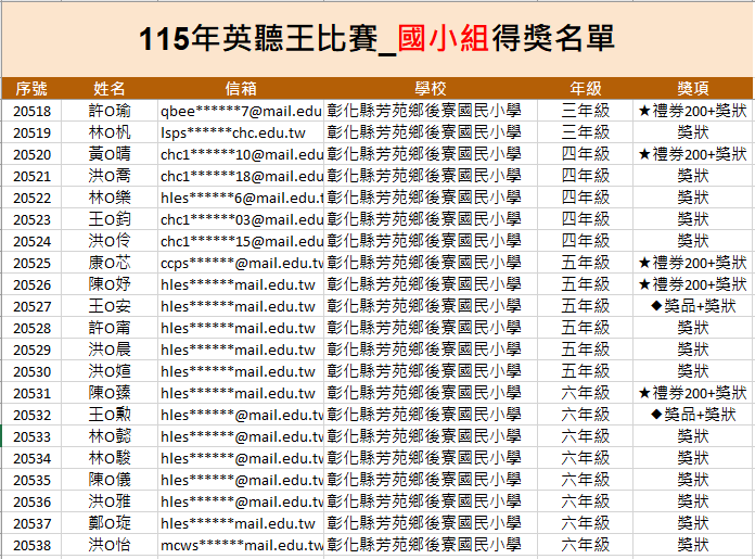 恭喜獲獎的同學~