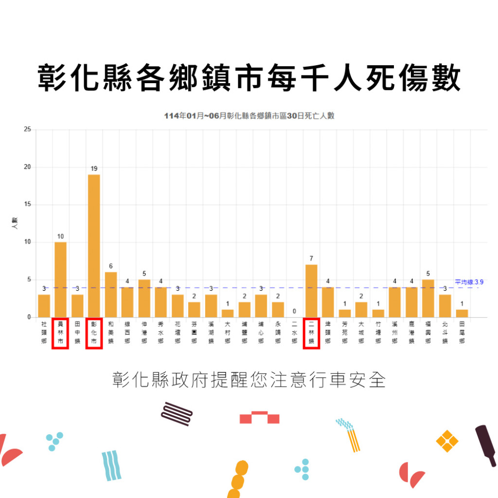彰化縣114年1-6月道路交通事故死傷累計15,648人,請大家要注意交通安全